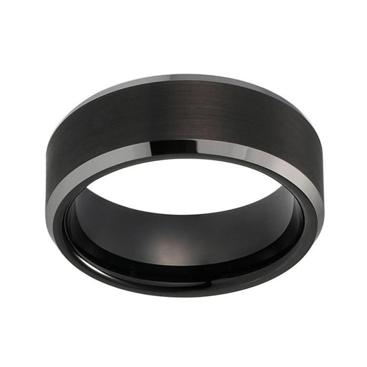 Black Brushed Tungsten Center with Smooth Beveled Dome Shape Edge Wedding Ring