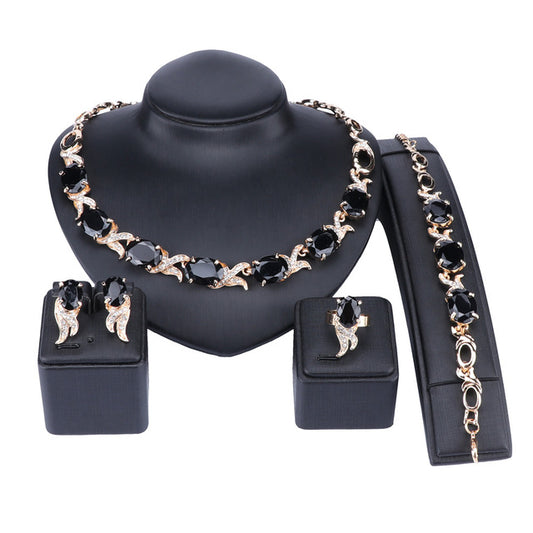 Black Crystal Necklace, Bracelet, Earrings & Ring Jewelry Set