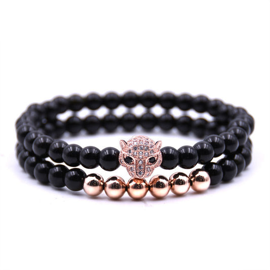 Black Leopard Handmade Natural Stone Beads Fashion Charm Bracelet Set