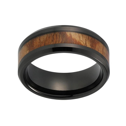 Black Men's Tungsten Carbide Ring Red Wood Inlay Wedding Band