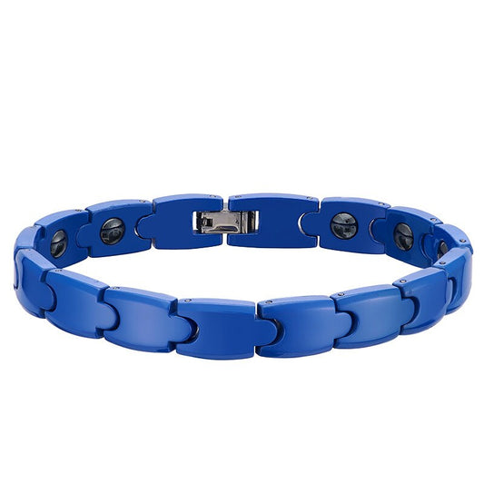 Blue Engraved Wheel-like Tungsten Carbide Dome Ring