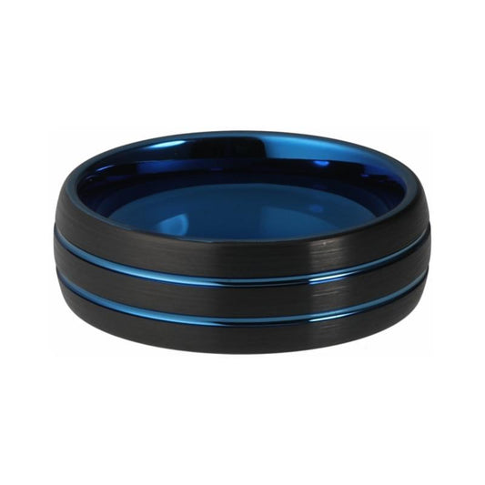 Blue Cubic Zirconia with Golden Groove Black Tungsten Carbide Wedding Band