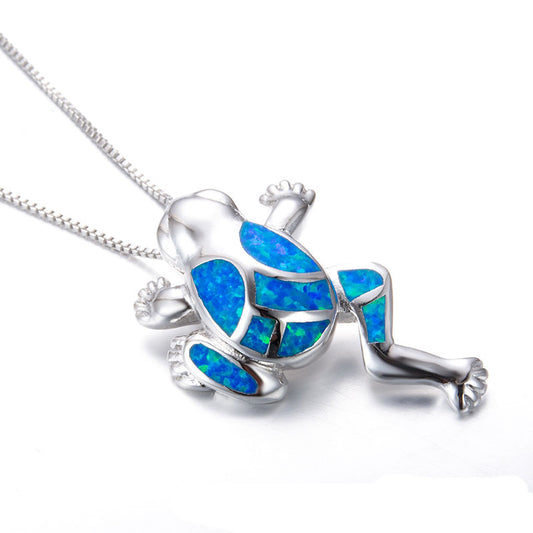 Blue Opal Frog 925 Sterling Silver Pendant Necklace