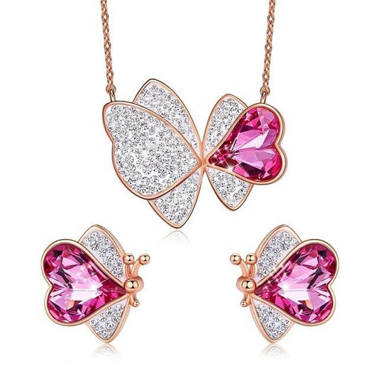 Crystal Butterfly Necklace & Earrings Jewelry Set