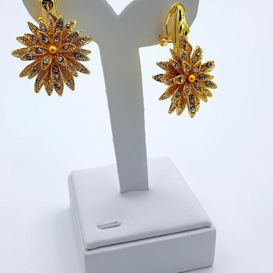Crystal Golden Flower Necklace, Bracelet, Earrings & Ring Jewelry Set