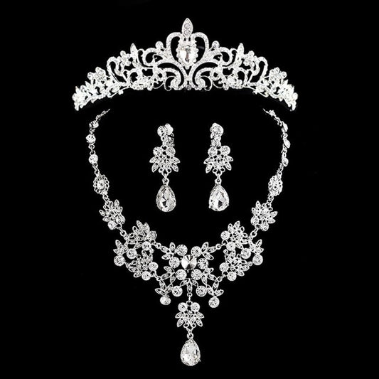 Crystal and Rhinestone Silver Color Tiara, Necklace & Earrings Jewelry Set