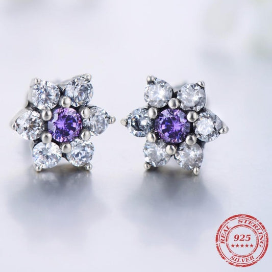 Crystal Flower 925 Sterling Silver Necklace, Stud Earrings & Ring Wedding Jewelry Set