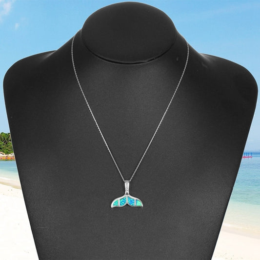 Crystal Blue Opal Ocean Mermaid Pendant Necklace