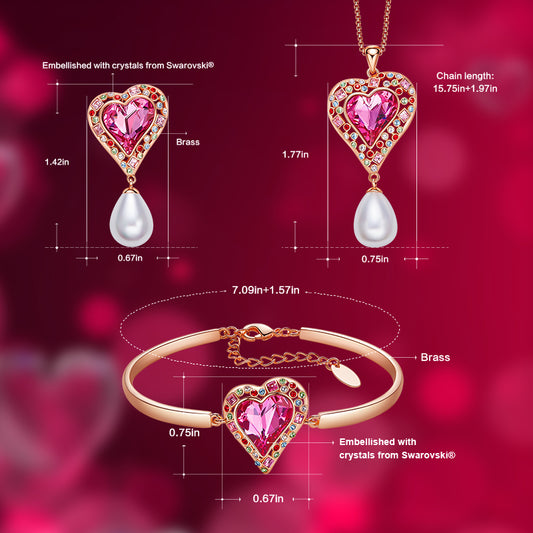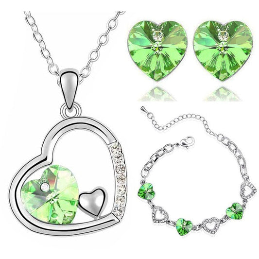 Crystal Heart Necklace, Bracelet & Earrings Jewelry Set