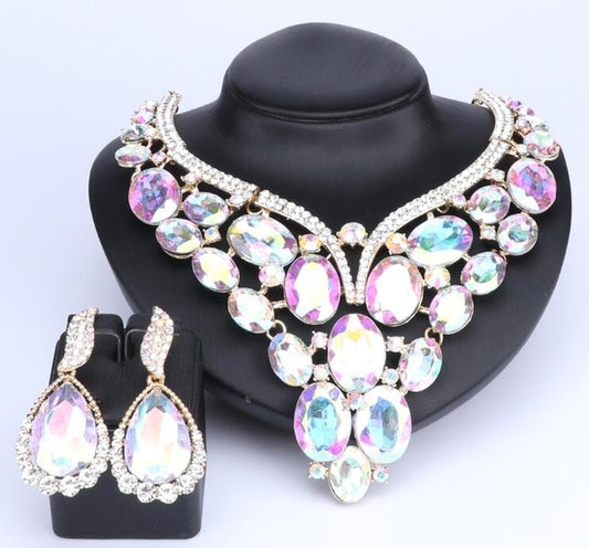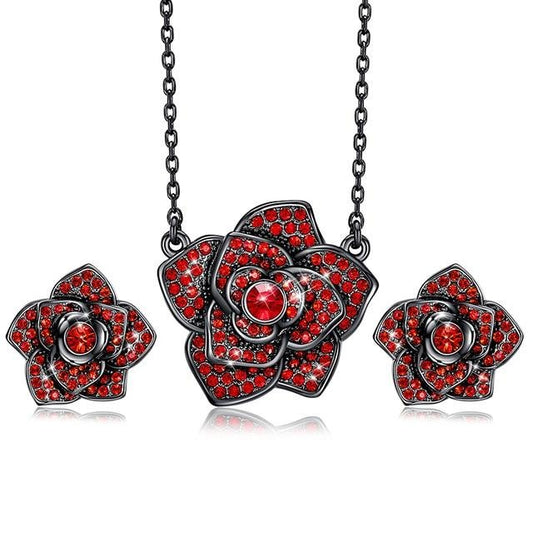 Crystal Rose Flower Necklace & Earrings Jewelry Set