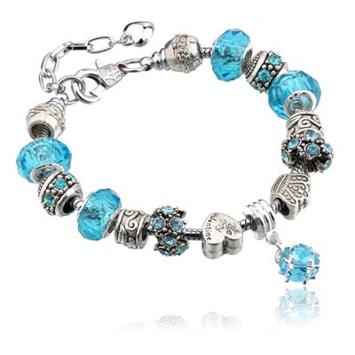 Crystal Silver Heart, Crown & Flower Charm Bracelet