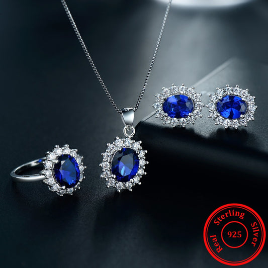 Crystal Oval 925 Sterling Silver Necklace, Earrings & Ring Classic Jewelry Set