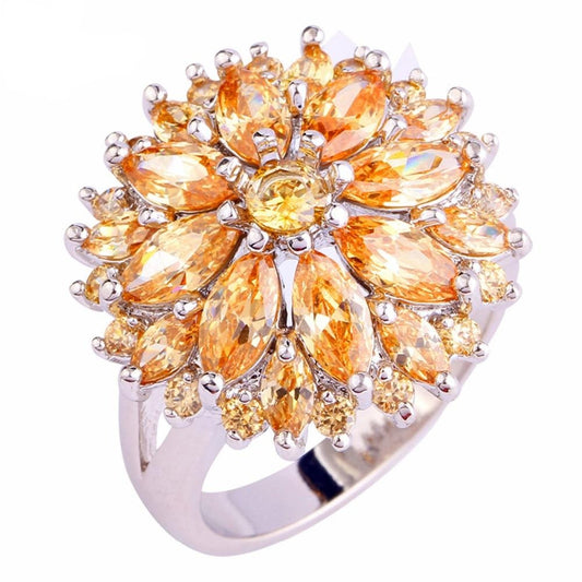 Cubic Zirconia Cluster 925 Sterling Silver Flower Fashion Ring