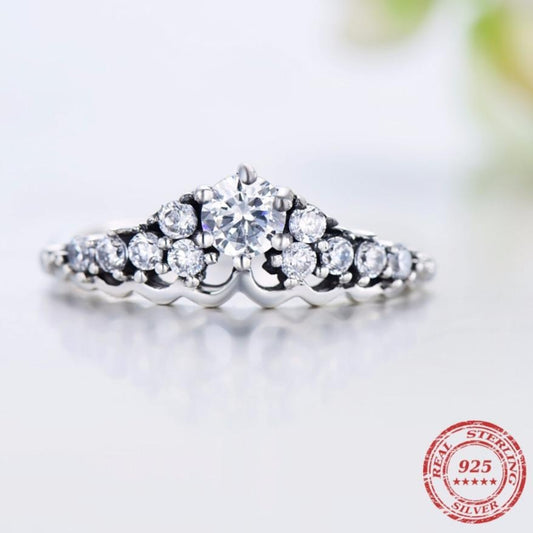 Cubic Zirconia Crown 925 Sterling Silver Necklace, Stud Earrings & Ring Wedding Jewelry Set