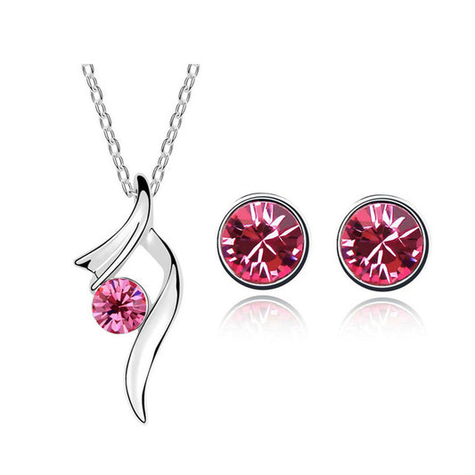 Czech Rhinestone Ribbon Necklace & Earrings Jewelry Set