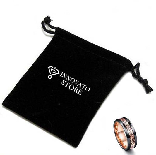 Double Inlay Black Tungsten Carbide with Dragon Celtic Pattern Wedding Ring