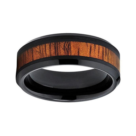 Domed Shape Black Tungsten with Natural Koa Wood Inlay Wedding Band