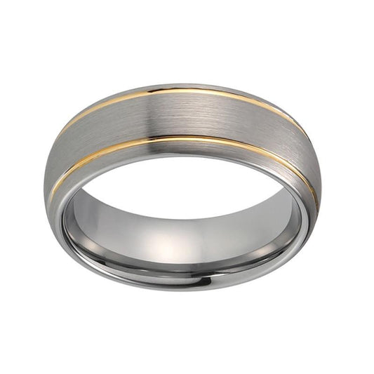 Double Gold Groove Dome Shape with Silver Brushed Matte Tungsten Carbide Wedding Ring