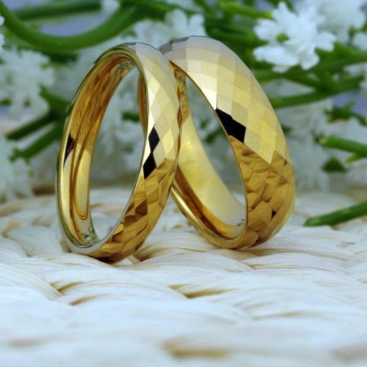 4mm & 6mm Classic Golden Beveled Tungsten Carbide Wedding Band