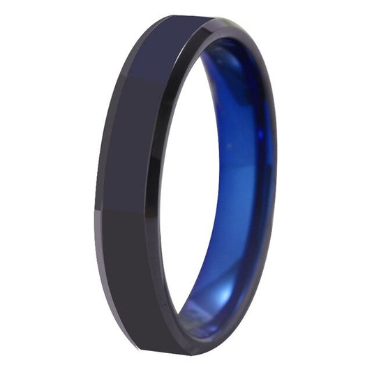4mm & 6mm Polished Black & Blue Tungsten Carbide Wedding Band