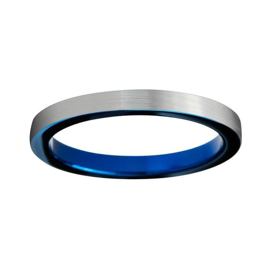 3mm Thin Silver Brushed Matte and Blue Coated Tungsten Ring