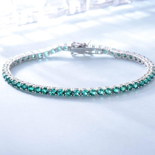 Emerald Link Chain 925 Sterling Silver Bracelet