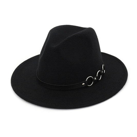 European Style Jazz Wide Brim Wool Felt Fedora Hat with Rings and Belt Hatband