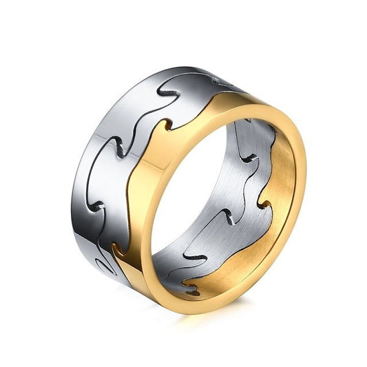 Exclusive 3 - Piece Removable Puzzle Gold and Black Stainless Steel Ring