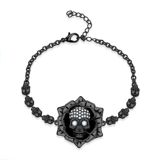 Flower and Cubic Zirconia & Crystal Skull Fashion Bracelet