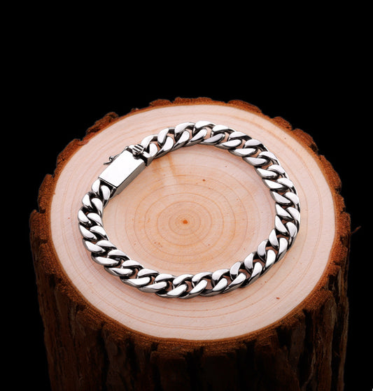 Glossy Chain Link 925 Sterling Silver Biker Bracelet