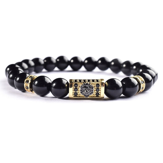 Glossy Beads & Lion Crown and Anchor with Pave Cubic Zirconia Stone Charm Bracelet