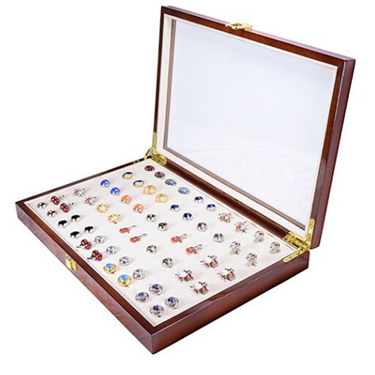 50 Pairs Assembly Luxury Glass Cover Cufflink Wooden Storage Box