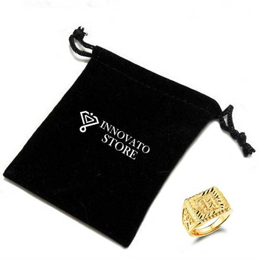 Gold Plated 14mm Ring for Men with Chinese Letter Design on Dome and Sides of the Ring