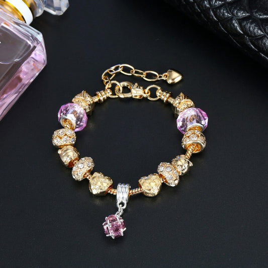 Gold Owl & Tortoise Crystal Charm Bracelet