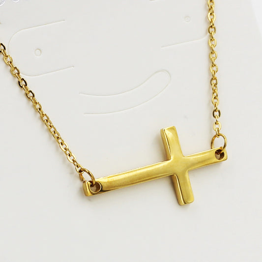 Gold or Silver Sideways Cross Necklace & Bracelet Jewelry Set