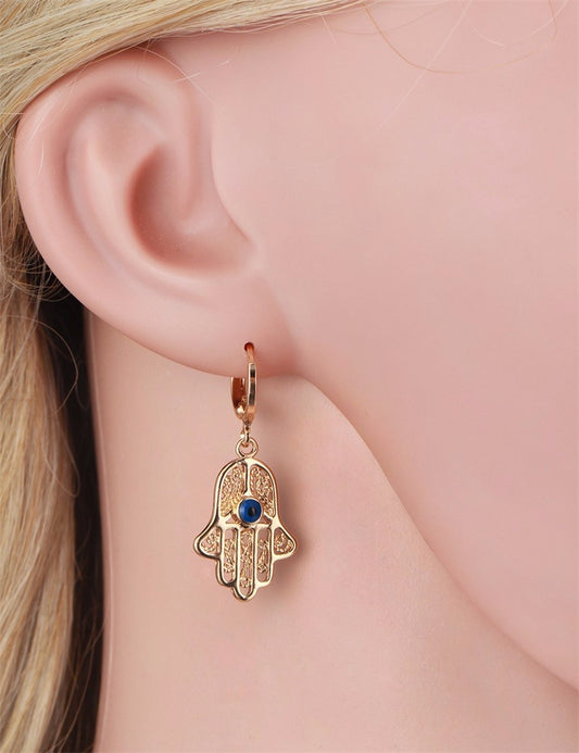Gold Filigree Hamsa Hand and Evil Eye Necklace & Earrings Jewelry Set