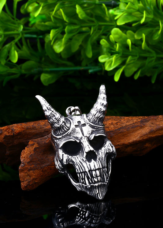 Gothic Satanic Devil Skull & Cross Stainless Steel Biker Pendant Necklace