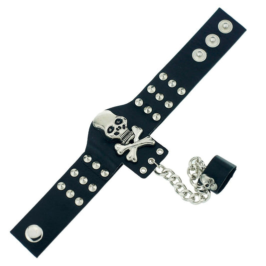 Gothic Skeleton Skull, Chain Link and Rivet Leather Bracelet