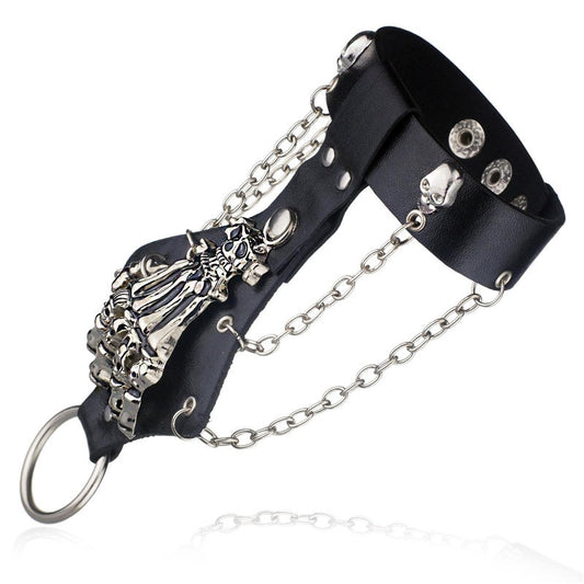 Gothic Skeleton Skull Hand Glove Chain Link Leather Bracelet