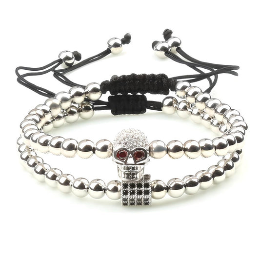 Gothic Skull Cubic Zirconia Vintage Braided Adjustable Bracelet