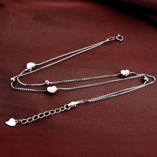 925 Sterling Silver Heart Anklet Bracelet For Women