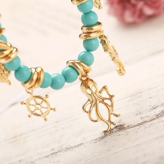Bohemian Sea Creature Pendant and Beads Anklet For Women