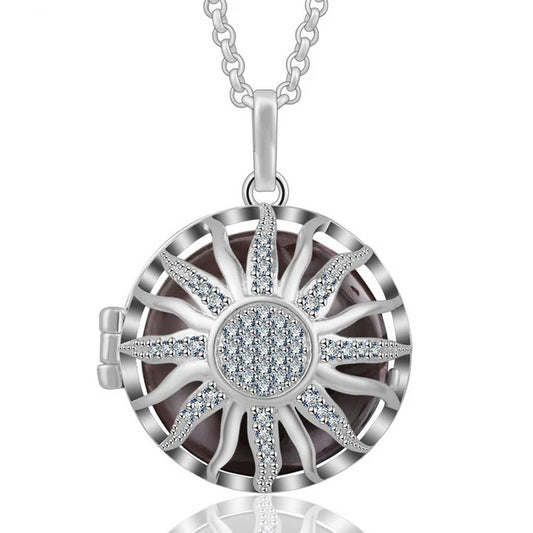 Sun with Crystals Aromatherapy Locket Pendant Necklace