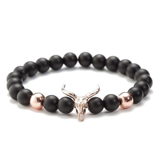 Deer Head with Micro Inlaid Cubic Zirconia Natural Stone Beaded Bracelet