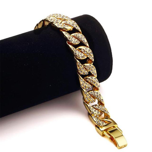 Men's Luxury CZ Crystal Golden Hip Hop Cuban Bracelets & Bangles
