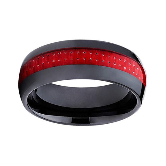 8mm Dome Shape Black Ceramic Band with Red Carbon Fiber Inlay Wedding Ring