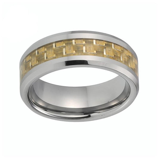 Yellow Carbon Fiber Inlay on Silver Coated Tungsten Carbide Ring