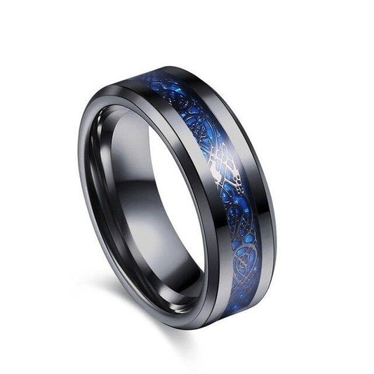 Black Celtic Dragon & Blue Claddagh Zirconia Wedding Engagement Band Set