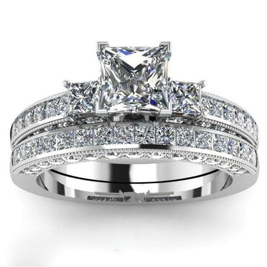 Gold & Silver Plated Cubic Zirconia Tungsten His & Hers Wedding Ring Set