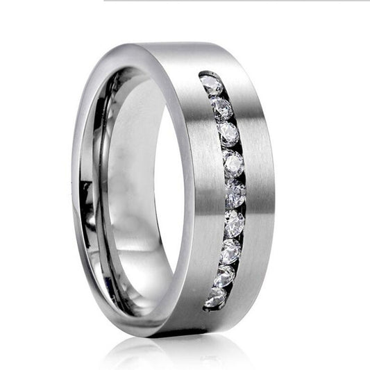 Titanium Band and Heart Zircona Engagement Wedding Ring Set
